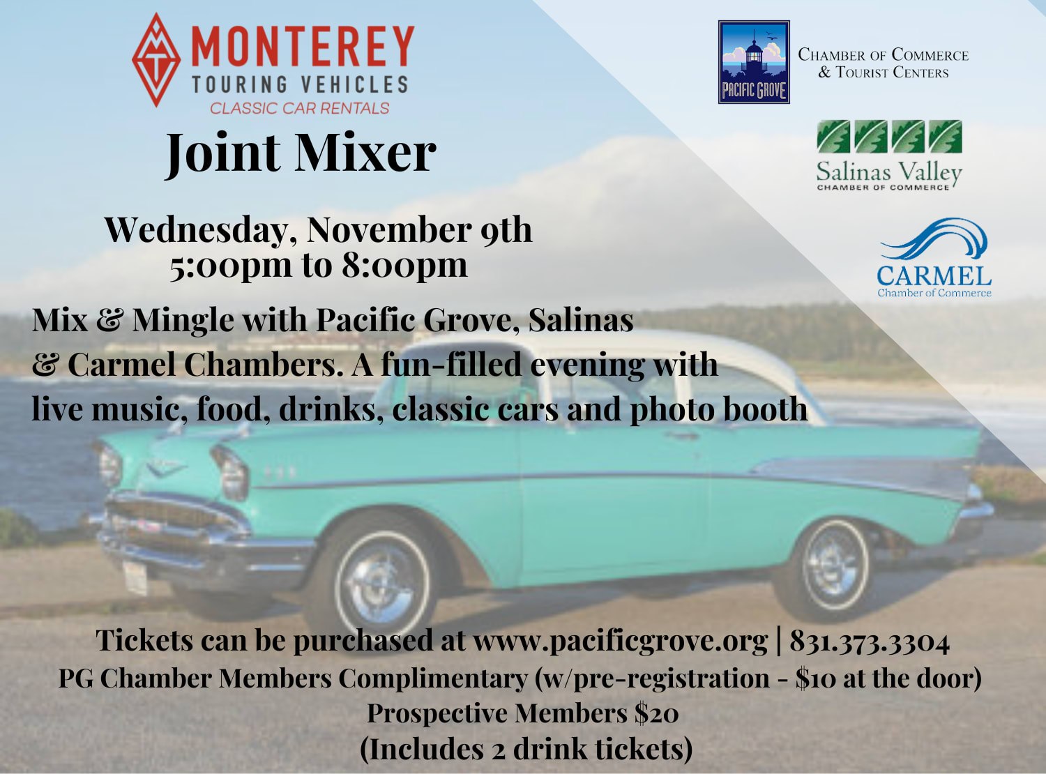 Pacific Grove Chamber Members is Complimentary (with Pre-Registration - $10.00 at the door)