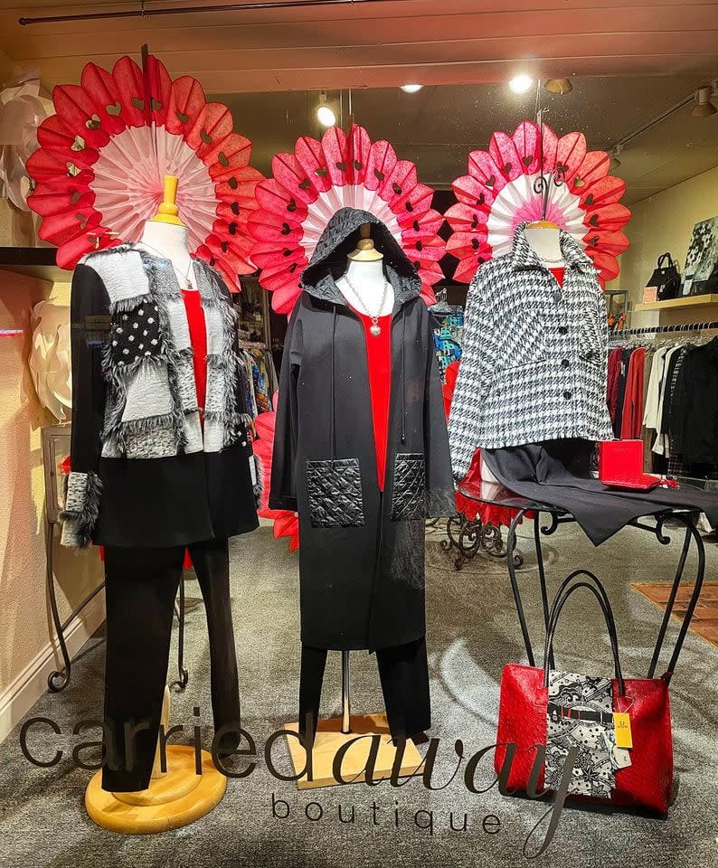 A bustling women's boutique, Carried Away, is located in the heart of charming Pacific Grove! Classic pieces with unexpected details, quality brands, and warm customer service. Join us for one-on-one shopping, Facetime shopping, or curbside pick-up! Whether you are looking for closet essentials or a special piece of treasure, Carried Away has something for you.