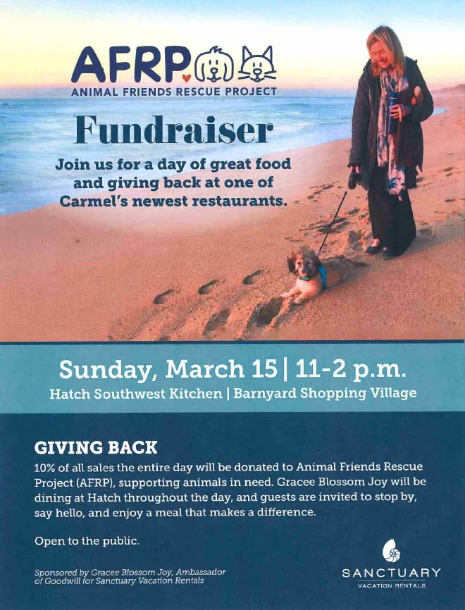 Join us on Sunday, March 15th from 11:00 - 2:00 pm for a day of great food and giving back. 10% of all sales will be donated to Animal Friends Rescue Project, supporting animals in need. Open to the public.