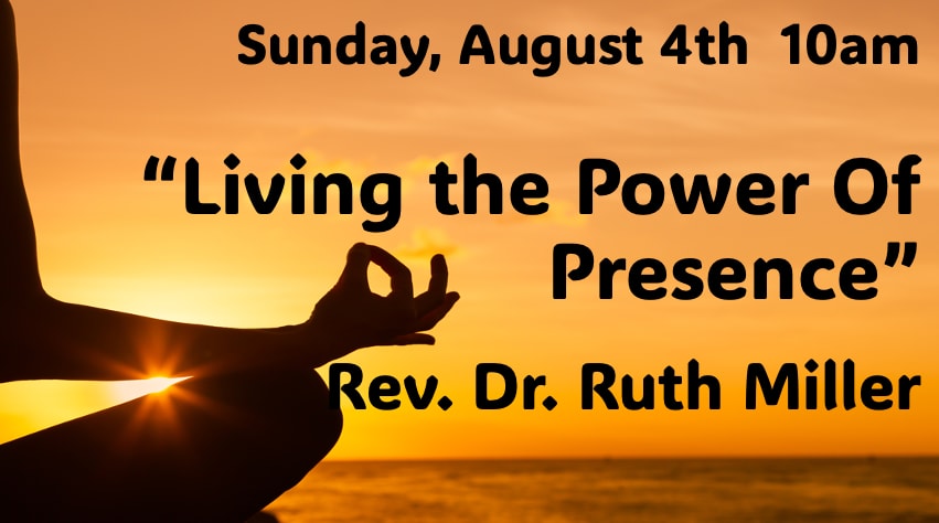 Join Rev. Dr. Ruth Miller as she will present "The Power of Presence" on Sunday August 4th at 10:00 am.