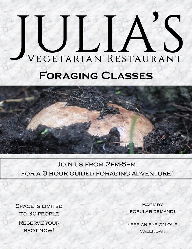 Join us from 2:00 - 5:00 pm on December 18th for a 3 hour guided mushroom foraging adventure! We will provide an introduction to foraging mushrooms in our local area. Space is limited. Reserve your spot now. $45.00 per person. Julia's Foraging Class