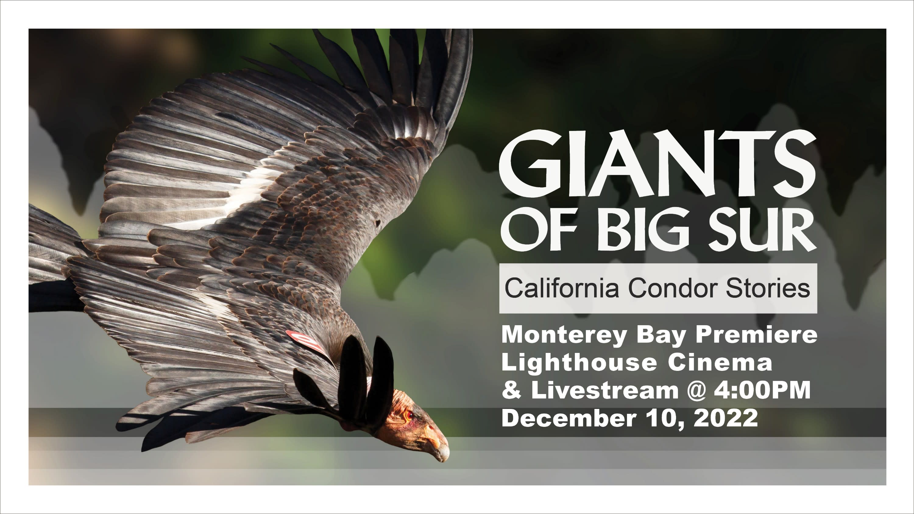 Lighthouse Cinemas will show Giants of Big Sur - California Condor Stories on December 10th at 4:00 pm. A Ventana Wildlife Society Documentary. Tickets - $25.00 per person. Livestream - $10.00 per person.
