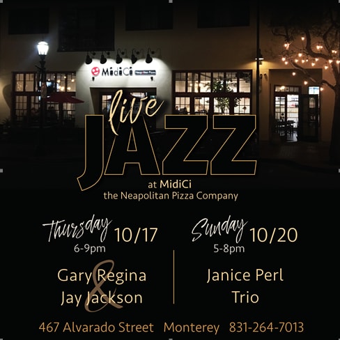 Don’t miss a beat at MidiCi Monterey this week! Jazz Night is Sunday, October 20th from 5:00 – 8:00 pm. Chill out with cool, live music with the Janice Perl Trio and terrific food and drinks.