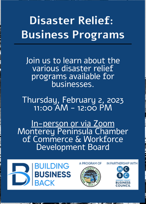 The heavy rains, subsequent flooding, and mudslides that impacted millions of Californians culminated in President Biden's emergency declaration ( DR-4683-CA ) for counties impacted by the severe winter storms, landslides, and mudslides. The emergency declaration opens the door for federal dollars to come into our community to help mitigate the effects of the recent storms. Navigating these resources can be difficult but it doesn't have to be! Building Business Back, along with our partner organizations, will highlight some of the resources coming in from the federal, state, and county governments. Join us and learn what disaster relief resources you may be eligible for!