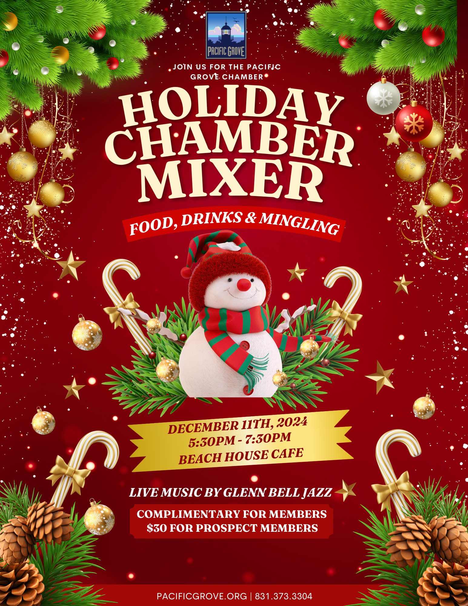 Join us for the PG Chamber Holiday Mixer on Wednesday, December 11th from 5:30pm to 7:30pm at the beautiful Beach House Cafe at Lovers Point.
