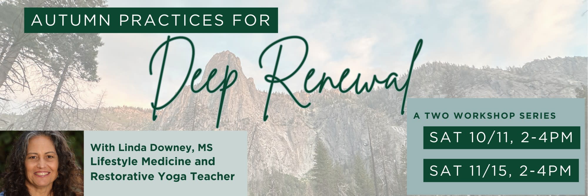 Autumn Practices for Deep Renewal (Part 2) With Linda Downey, MS; Lifestyle Medicine and Restorative Yoga Teacher at Balance Yoga & Wellness on Saturday, November 15th from 2:00 – 4:00 pm.