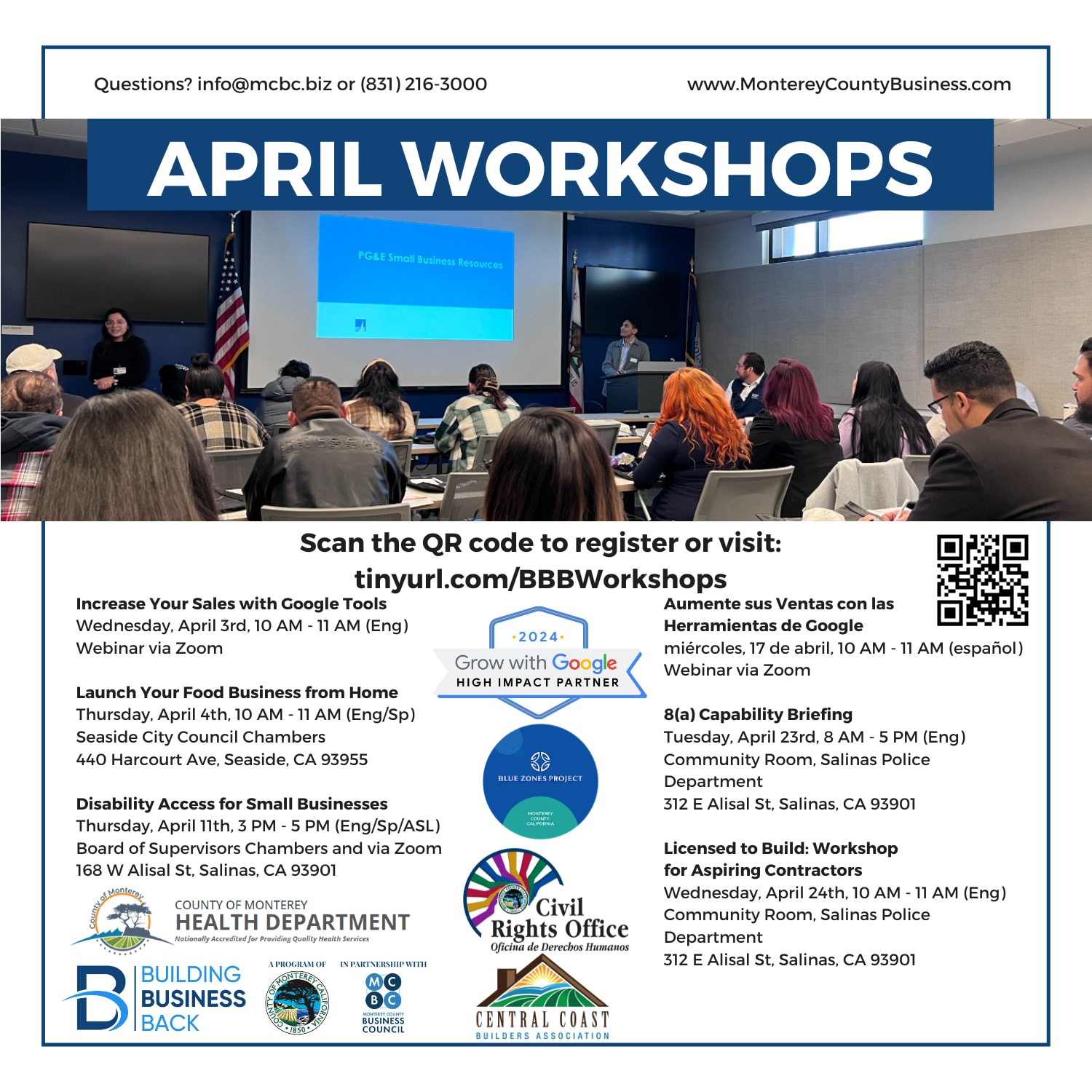 Launch your food business from home workshop is on April 4th from 10:00 - 11:00 am at the Seaside Council Chambers. For more information and to register: www.tinyurl.com/BBBWorkshops or scan the QR code on the flyer.