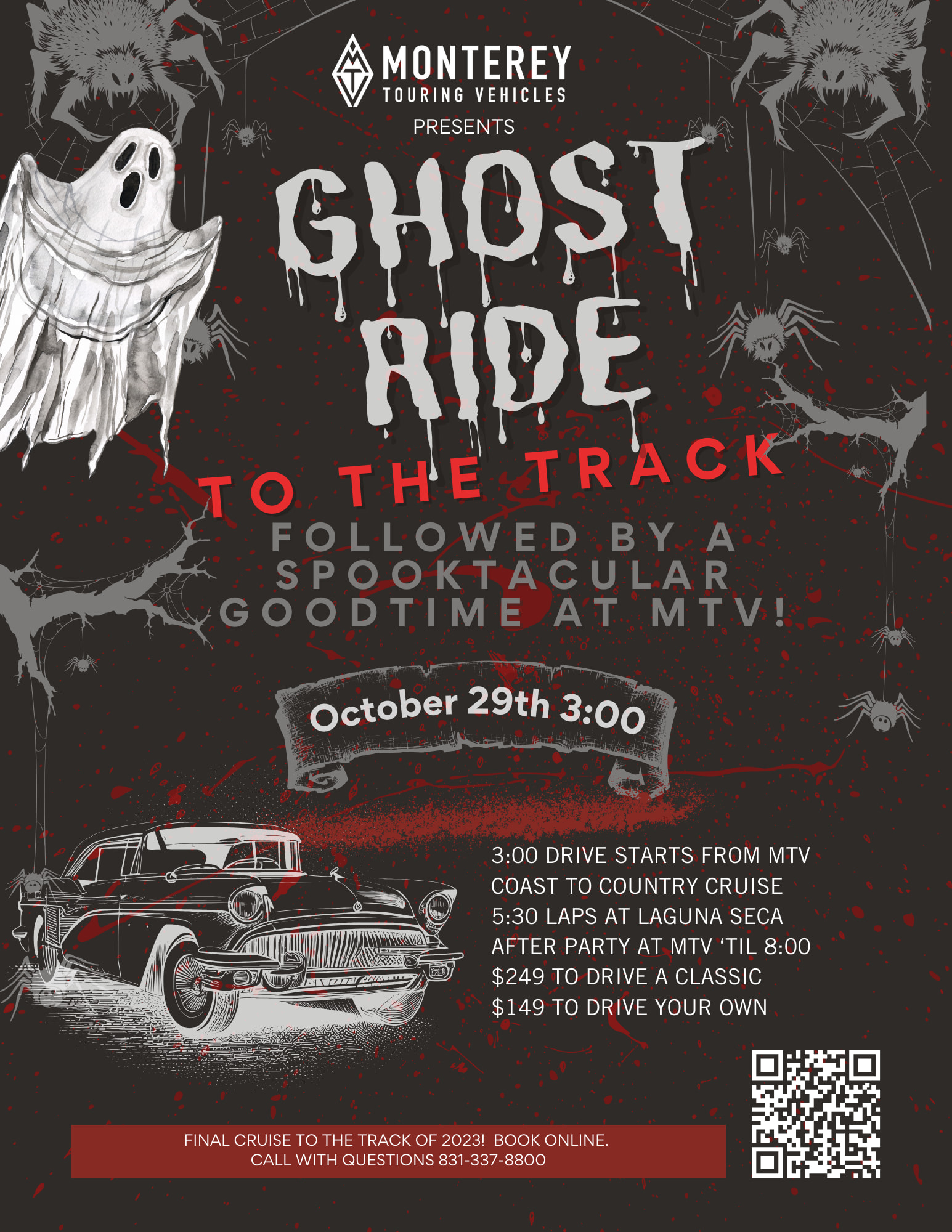 MTV "Ghost Ride" to WeatherTech Laguna Seca Race Track and do some laps. Followed by a Spooktacular good Time at MTV.