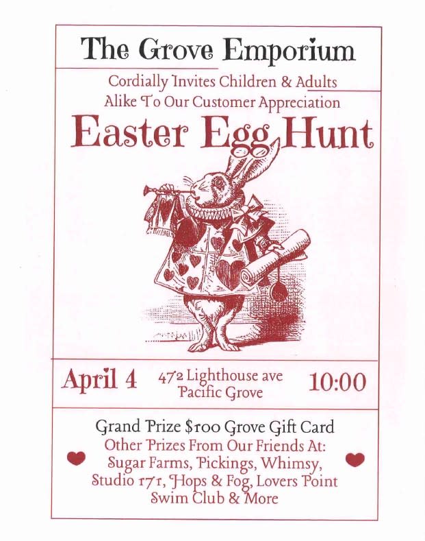 The Grove Emporium invites children and adults to their customer appreciation Easter Egg Hunt on Saturday, April 4th at 10:00 am. Prizes!