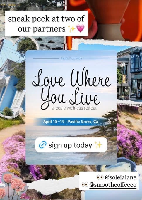 Love Where You Live, a locals wellness retreat is a thoughtfully designed weekend retreat created for our local community — a chance to slow down, step out of routine, and reconnect with what makes the Monterey Peninsula so special.