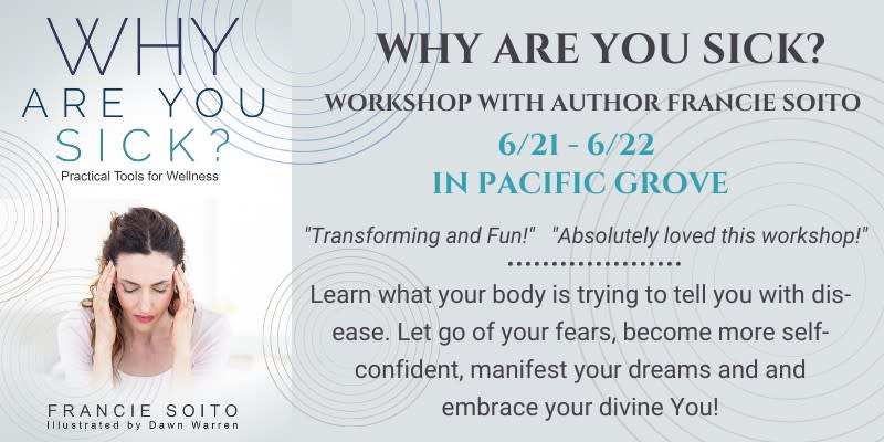 Why Are You Sick? Workshop with Francie Soito will be held on Saturday, June 21st and Sunday, June 22nd at 10:00 am both days.